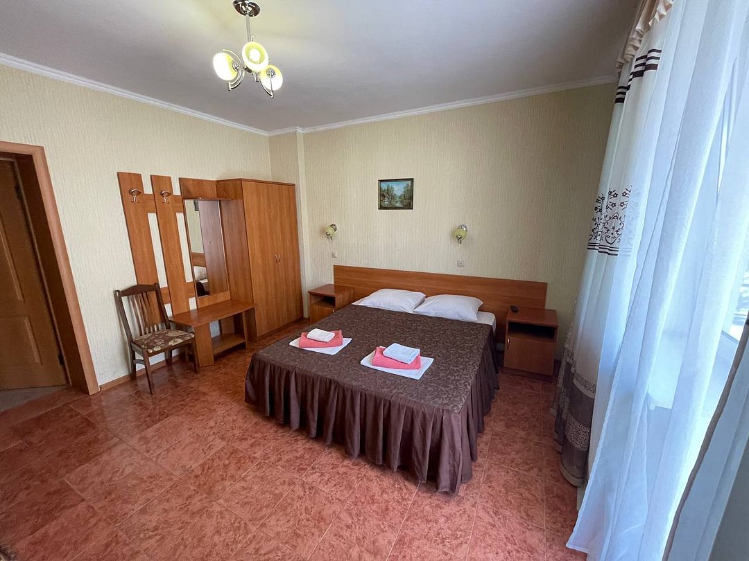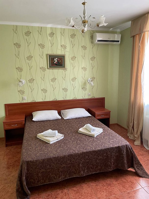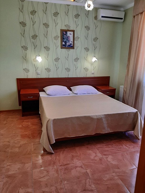 двуспальная кровать или две раздельные, санузел, телевизор, мини-холодильник ,чайник, кондиционер. Расположены на 1 этаже. Без балкона. один номер с доп. местом, кресло-кроватьВ номере