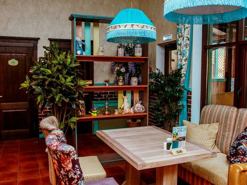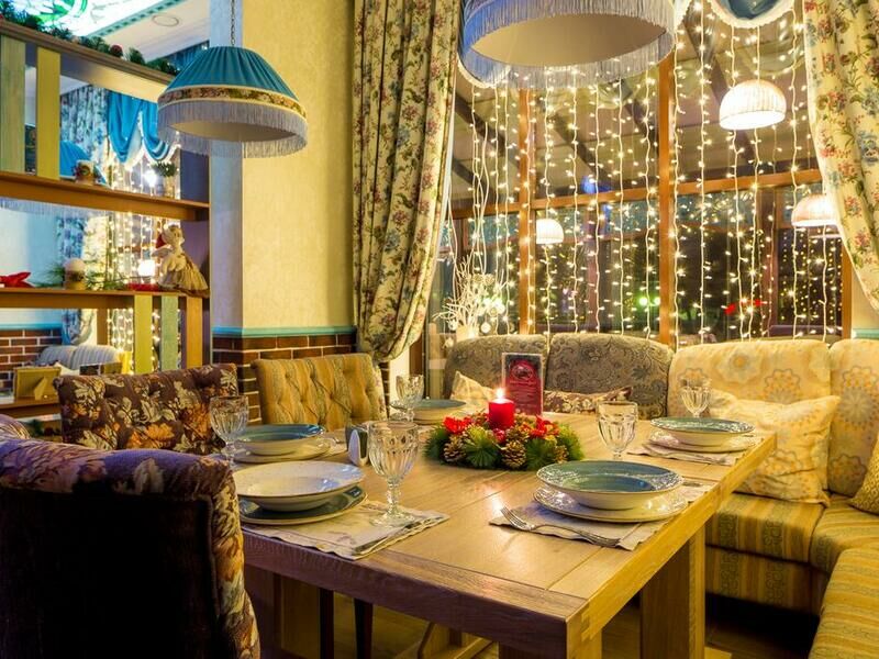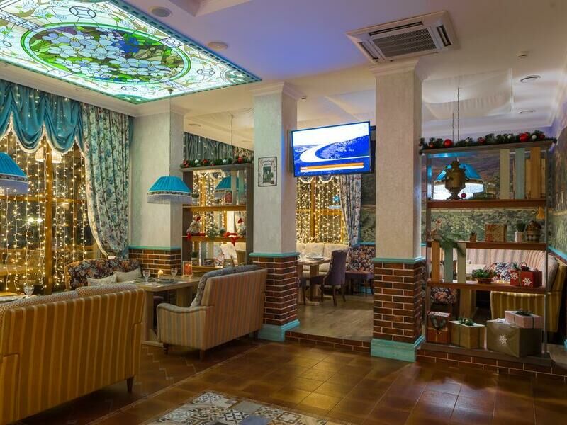 Кафе предлагает гостям отеля отдых и вкусные блюда русской кухни в современной интерпретации. Гости могут выбрать для трапезы светлый просторный зал, открытую веранду или кальянную. Приятная обстановка и легкое музыкальное сопровождение располагают к проведению романтических вечеров, семейных обедов, встреч с друзьями, а также подходит для проведения банкетов и корпоративных приемов. Визитная карточка кафе - блюда из собственной коптильни, натуральные морсы, компоты, варенье из "бабушкиной кладовой".