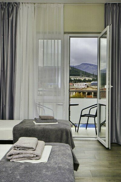 Все номера от 25 до 45 кв.м. Каждый номер имеет всё необходимое для уютного проживания: сплит-система, телевизор с плоским экраном, холодильник, а в некоторых номерах отеля есть балкон. В каждый номер есть возможность поставить евро-раскладушку за дополнительную плату!