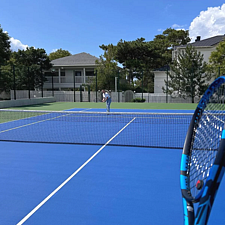 Есть все необходимое оборудование, чтобы вы могли получить удовольствие от игры. Благодаря качественному покрытию корта и чистому воздуху, вы сможете полностью погрузиться в игру.