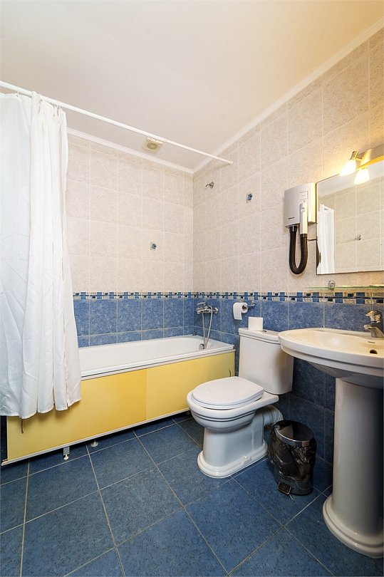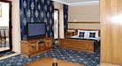 Общая площадь 35 кв.м. Две комнаты с итальянской дубовой мебелью. В номере: - спальня с большой кроватью, - гостиная с раскладным диваном, - автономная система кондиционирования, - телефон, спутниковое ТВ, интернет, - мини-сейф, - фен, халат, тапочки, - средства индивидуальной гигиены, - санузел-ванная, - 2 балкона - нет межкомнатной двери ПЕРЕЧЕНЬ УСЛУГ, ВХОДЯЩИХ В СТОИМОСТЬ: проживание, завтрак, открытый бассейн-в сезонУслуги и удобства