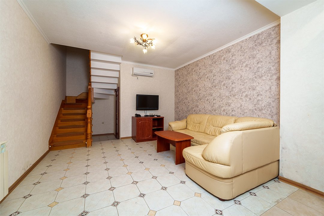 Общая площадь 54 кв.м. 1-й этаж: - гостиная с мягкой мебелью, - санузел 2-й этаж: - спальня с французской кроватью, и кресло раскладное - санузел-ванная -балкон - автономная система кондиционирования, - телефон, спутниковое ТВ, интернет, - мини-сейф, - фен, халат, тапочки, - средства индивидуальной гигиены, - санузел-ванная ПЕРЕЧЕНЬ УСЛУГ, ВХОДЯЩИХ В СТОИМОСТЬ: проживание, завтрак, открытый бассейн.Услуги и удобства