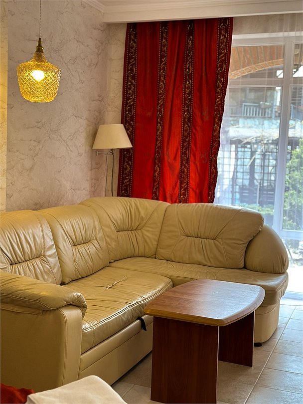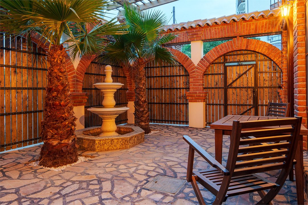 Уникальный номер ( второй свет) , большие панорамные окна с тремя потрясающими пальмами внутри , собственным внутренним двориком , мангальной зоной и фонтаном , кухней -гостиной , Кухня оснащена всей необходимой техникой и посудой. полноценный холодильник . Гостиная с раскладным диваном и креслом .Услуги и удобства