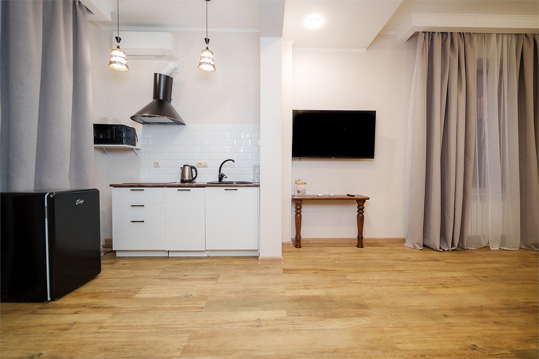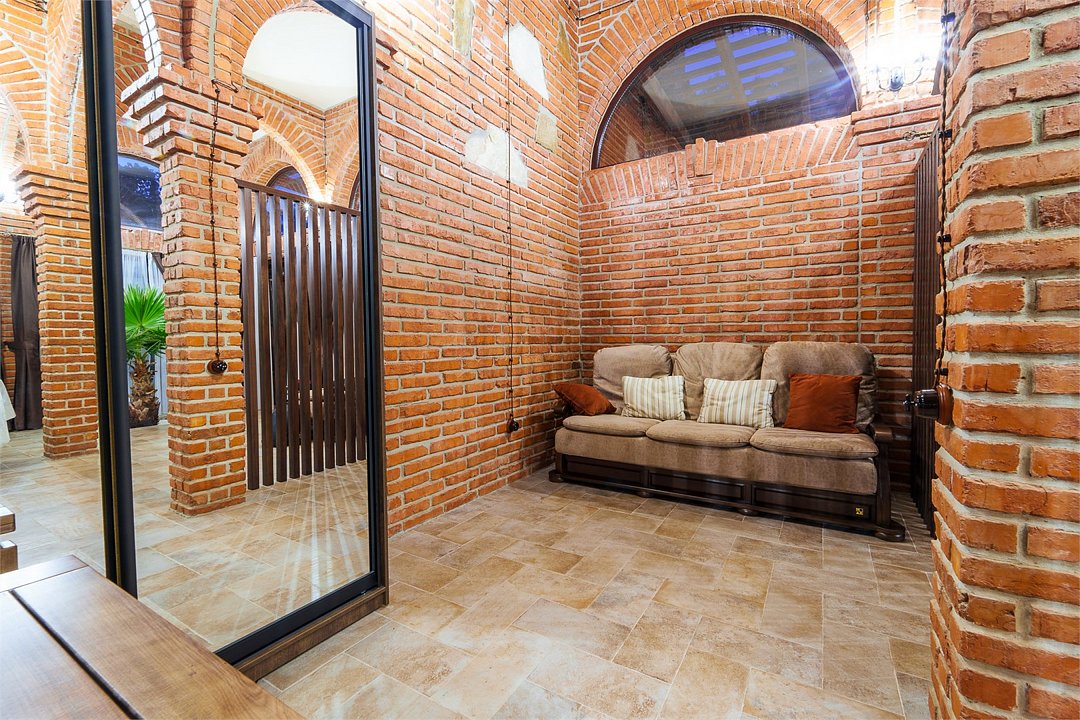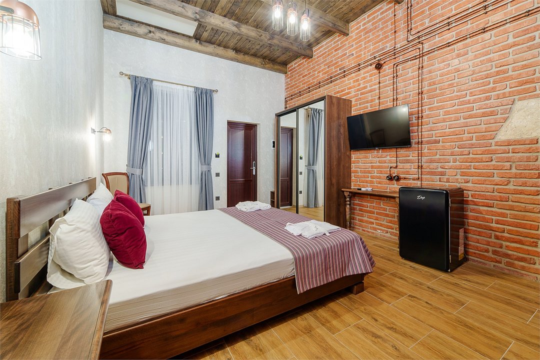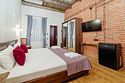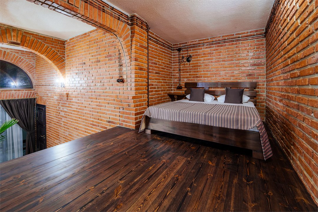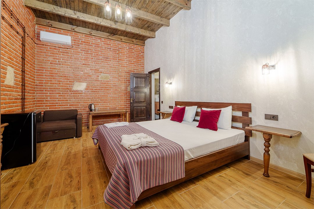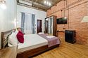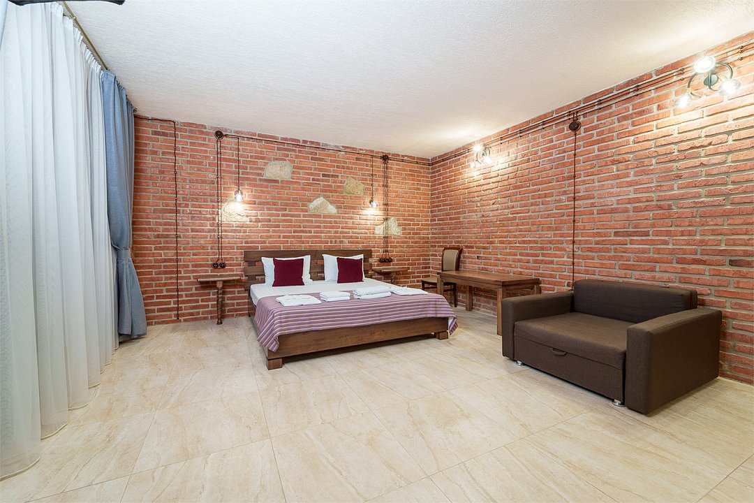 Общая площадь 26 кв.м. Просторный однокомнатный номер в стиле "лофт" . В номере: - большая кровать, - раскладное кресло - автономная система кондиционирования, - телефон, смарт ТВ, интернет, - мини-сейф, - фен, халат, тапочки, - средства индивидуальной гигиены, - санузел-душевая, - гостевая мангальная зона - красивый внутренний дворик с лавочками и пальмами - Внимание гостей, интерьер и ванная комната могут отличаться ПЕРЕЧЕНЬ УСЛУГ, ВХОДЯЩИХ В СТОИМОСТЬ: проживание, завтрак, открытый бассейн.Услуги и удобства