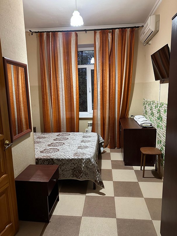 Двухместные, трехместные и четырехместные номера оборудованы всеми необходимыми удобствами для отдыха: односпальными или двухспальными кроватями, кондиционером, телевизором, холодильником, гардеробом. Есть номера с собственным сан узлом, а так же с удобствами на этаже.