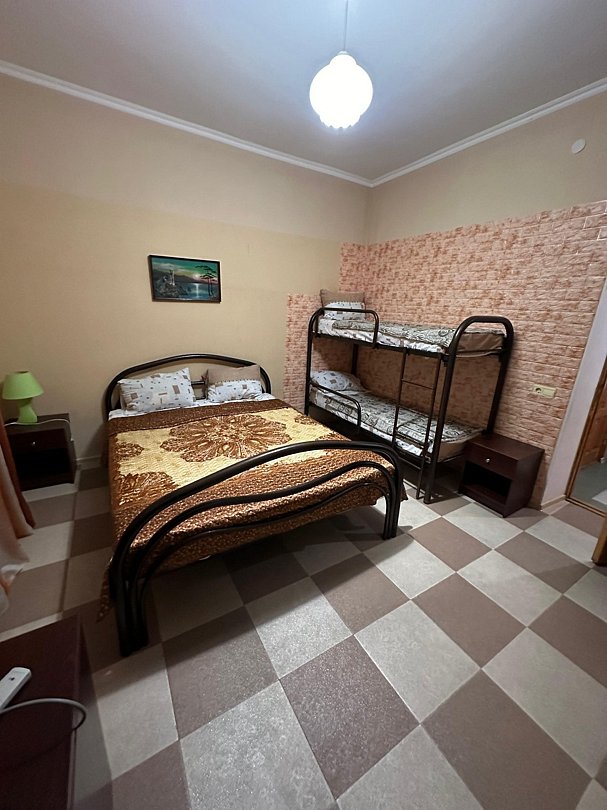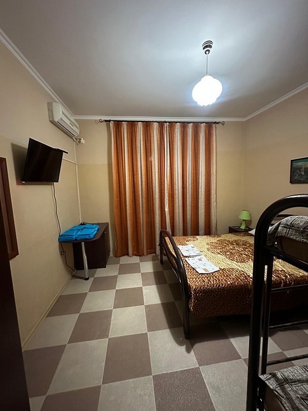 Одна двуспальная кровать одна двухъярусная кровать, холодильник, кондиционер, телевизор, санузел ,душ