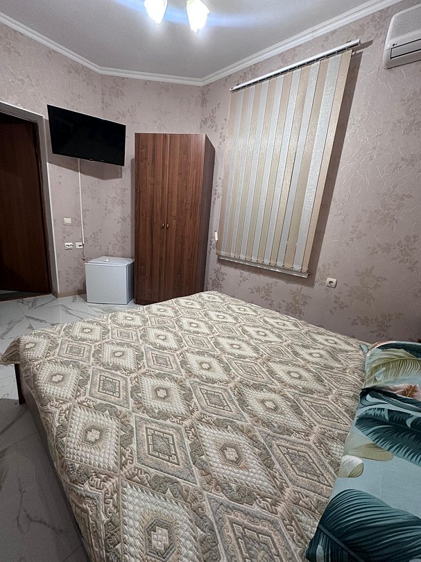 Кровать двуспальная , холодильник, кондиционер, телевизор, санузел , душ