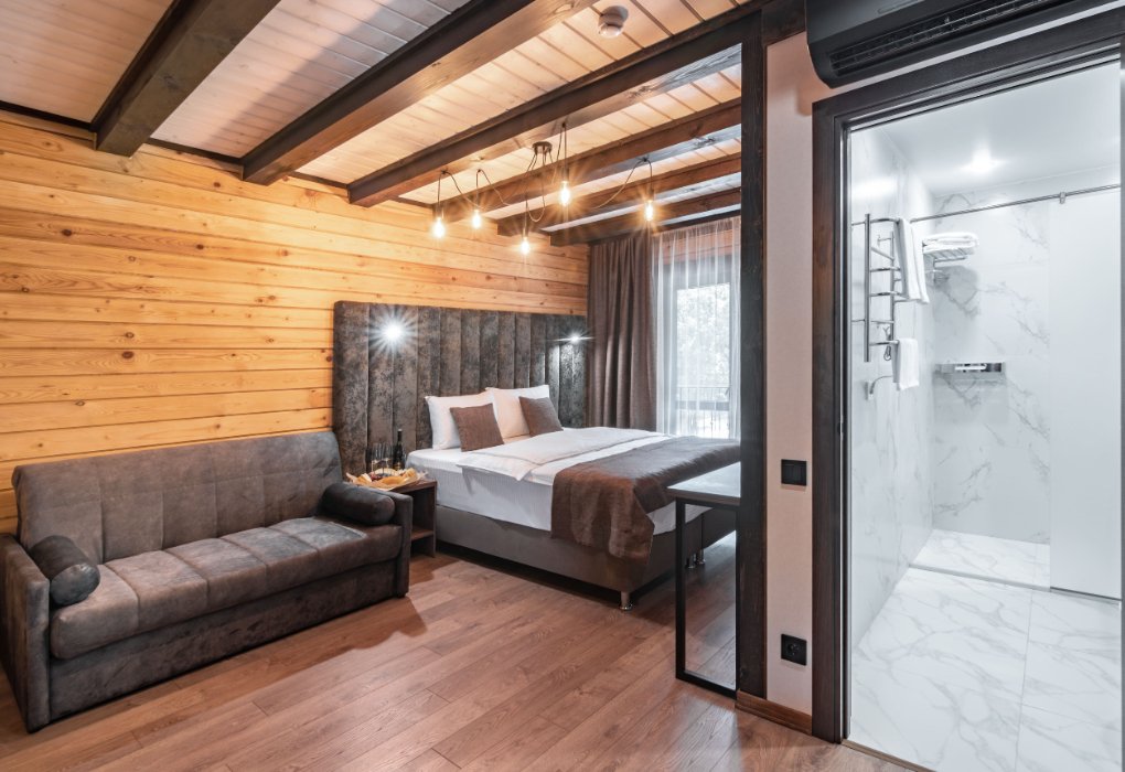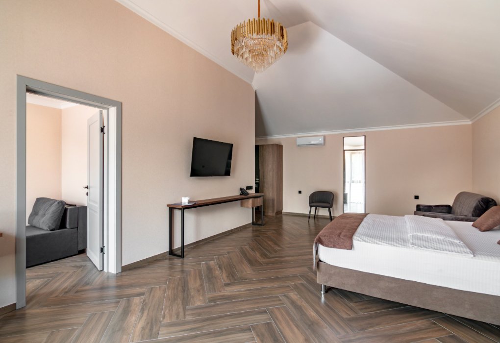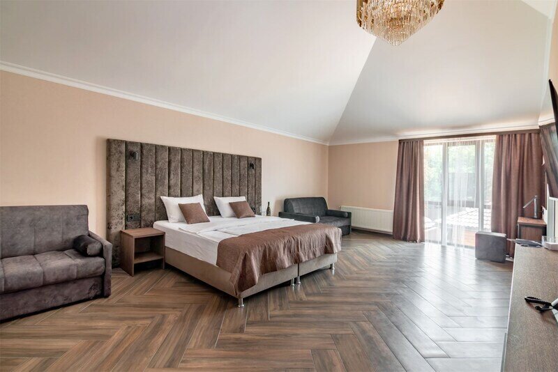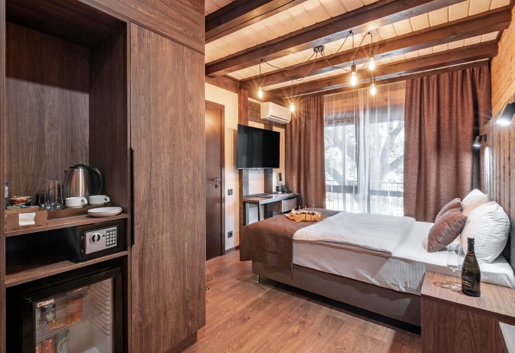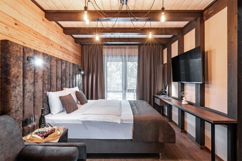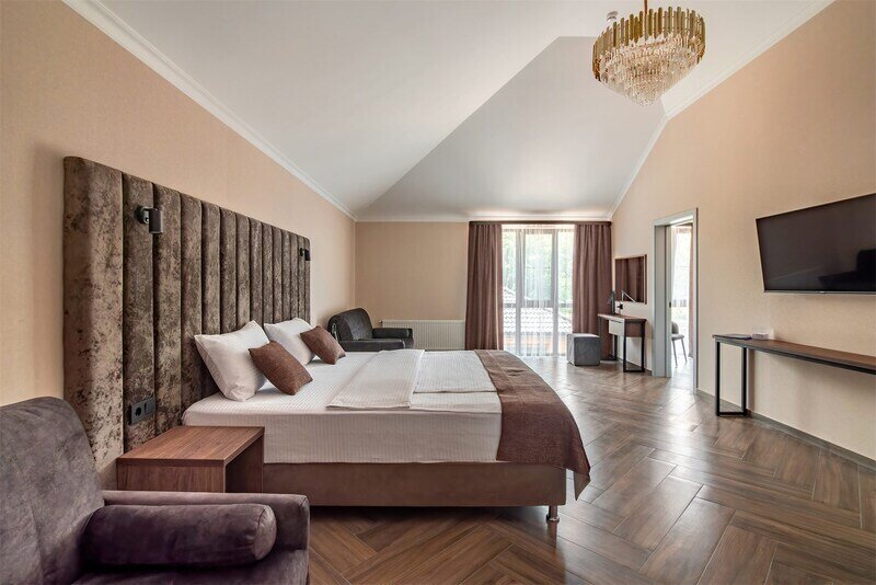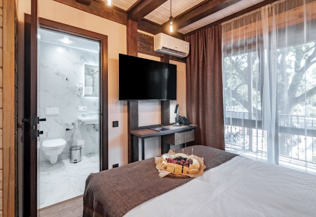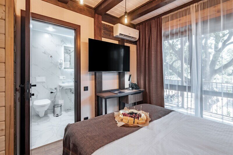 На базе отдыха для гостей предоставляются просторные и светлые номера с современным ремонтом, удобной мебелью, ортопедическими матрасами и постельным бельем для приятного пребывания. Из балкона открывается вид на красивую бухту и милый дворик.