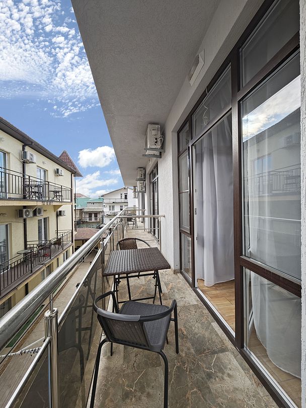 Просторный номер Комфорт с балконом с 2-мя основными и 2-мя дополнительными спальными местами на 2 или 3 этаже. Новый ремонт, новая мебель и техника.