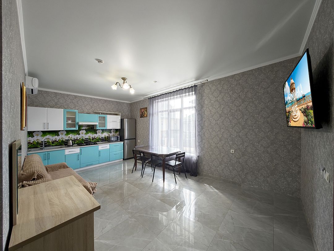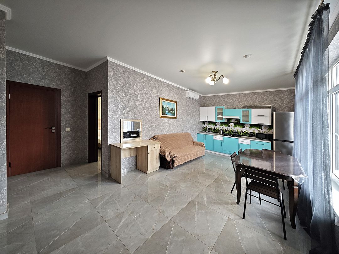 Просторный комфортный 2х комнатный семейный номер 5-6 спальных мест со своей кухней и балконом. Новый ремонт, новая мебель и техника.