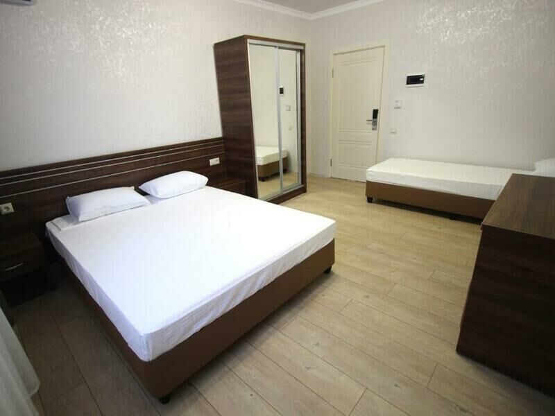 Семейный отдыхДостоинстваОтдыхаем здесь уже во второй раз. Номера аккуратные и чистые, убирают ежедневно и ответственно. Есть чайник, чашки и гигиенические принадлежности. Расположение отличное, до инфраструктуры пешком минут 10. Бассейн чистый, идеален, когда не хочется идти на море. Персонал приветливый и отзывчивый.