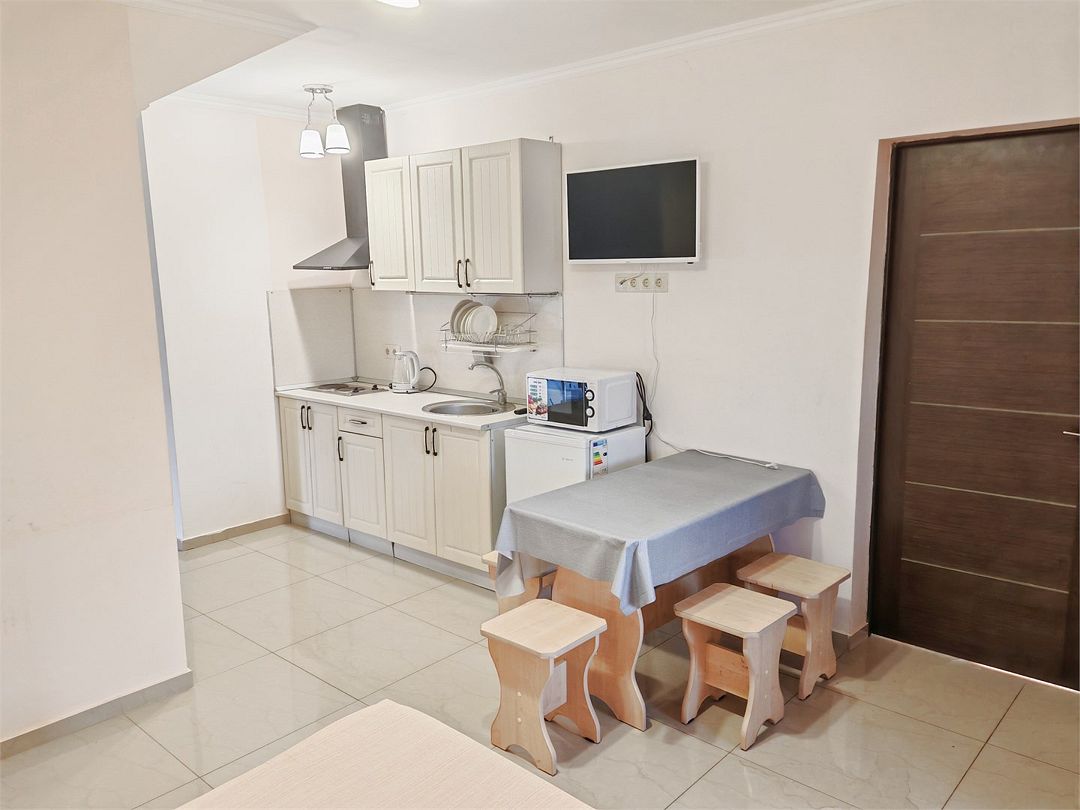 Уютные светлые номера, рассчитанные 2-4 гостей, оснащены всем необходимым для комфорта. В ванной комнате гости найдут стандартный набор сантехники, а также свежие полотенца. Имеется удобная мебель, телевизор, кондиционер. Чтобы приготовить домашнюю еду, гости могут воспользоваться общей кухней, оборудованной бытовой техникой и зоной барбекю. В некоторых номерах предусмотрена собственная кухонная зона для организации питания.
