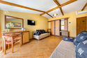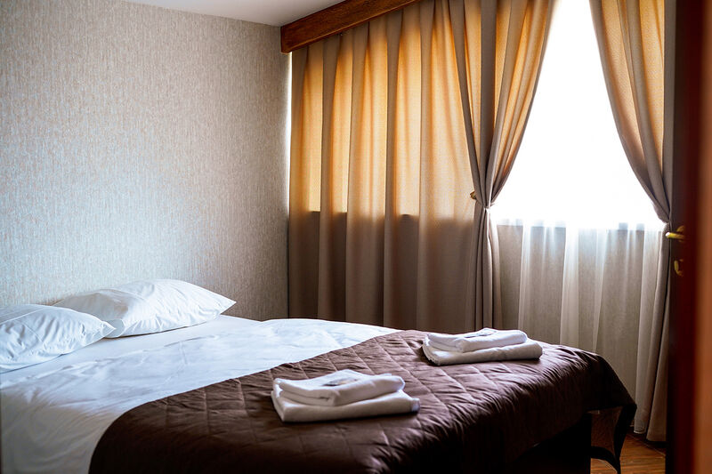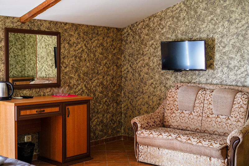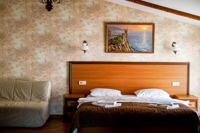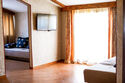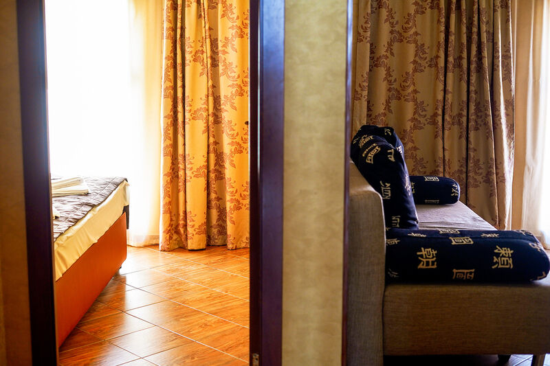 Всего два номера такой категории. В одном номере: двуспальная кровать и два раскладных дивана, в другом: 2 кровати-трансформер и раскладной диван