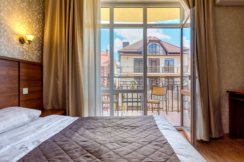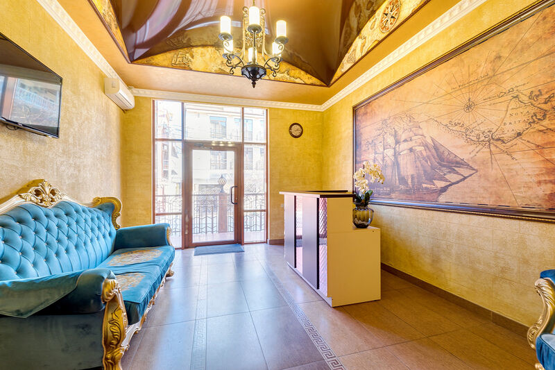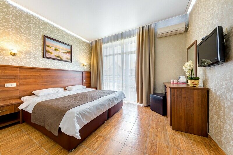 В гостевом доме «Золотой компас» сдаются в аренду меблированные номера: однокомнатные, двухкомнатные, трехкомнатные, с балконом и без балкона, с санузлом и душем. Номера оборудованы сплит-системой, телевизором, холодильником, есть Wi-Fi. Хозяева предлагают вкусные домашние завтраки. По желанию пищу можно готовить на кухне из собственных продуктов. Есть бесплатная парковка. До моря и пляжа 3 минуты ходьбы по оживленной центральной аллее с магазинами, ресторанами и кафе.