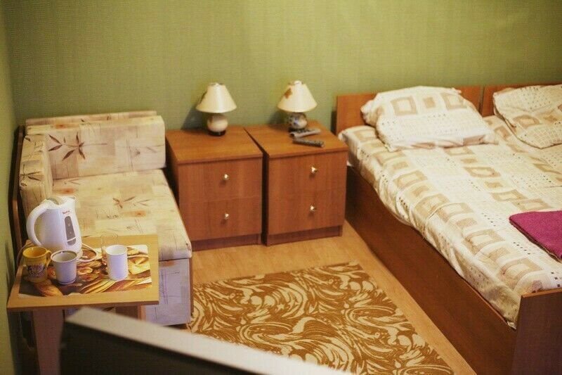 В каждом номере для гостей: две кровати, две тумбочки, стол, стулья, шкаф для одежды, холодильник, кондиционер, телевизор (спутниковое телевидение), электрочайник, санузел (туалет, душевая кабина, умывальник). Подача горячей и холодной воды осуществляется круглосуточно.