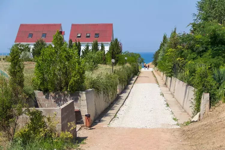 База отдыха «Романтик» находится в 200 м от пляжа. К пляжу ведет плавный спуск с лестницей.