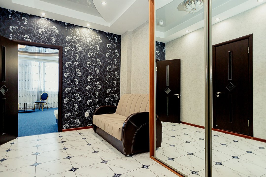 телевизор, Wi-Fi, телефон, кондиционер, светильник, фен, ванная комната, ванная с джакузи, гидромассажный душ, халаты, тапочки, две односпальные или большая двуспальная кровать, ортопедический матрас, диван, тумбы, стулья, вешалки, журнальный столик, письменный стол, багажная тумба, зеркало, письменные принадлежности, сейф, минеральная вода, унитаз, раковина, отопление, вид на город, кулер на этаже, высокие потолки, стаканы, раскладной диван, внутренний телефон, мини-холодильник, шкаф-купе, гостиничная парфюмерия, вид на горы, номер для некурящихВ номере