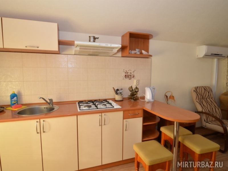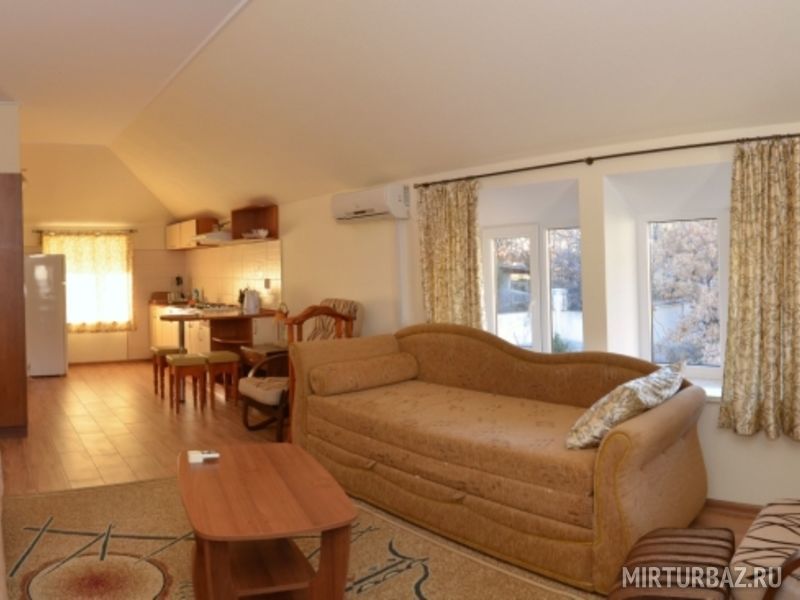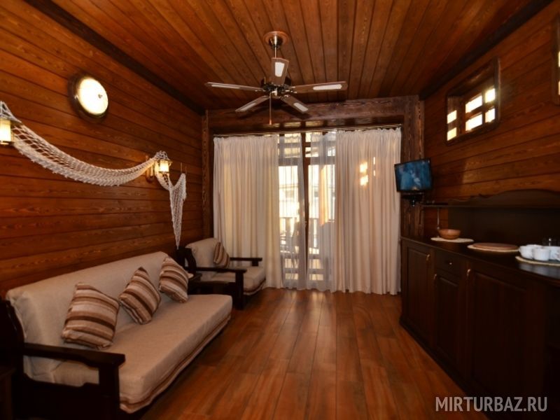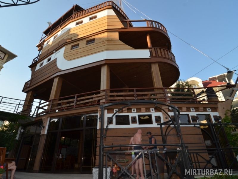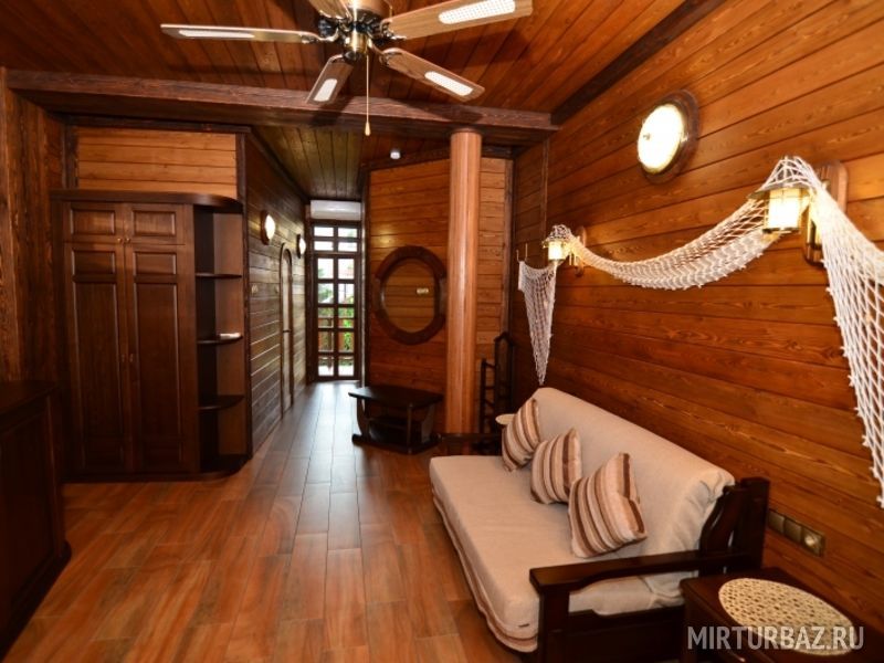 Гостевой дом выглядит неординарно – он спроектирован в виде деревянного корабля. Внутри вы найдете уютные комфортабельные номера категорий «люкс» и «стандарт», благоустроенную кухонную зону и оборудованную на верхней палубе зону отдыха, с которой открываются такие виды на окрестности, что захватывает дух!