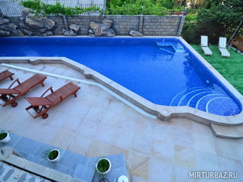 Гостевой дом располагает собственным бассейном, оборудованном шезлонгами и зонтиками, сауной, мангальными зонами. При желании вы можете заказать питание - блюда домашней кухни из предоставленного меню. Отдыхающим с собственным авто предоставляется бесплатная парковка на территории.