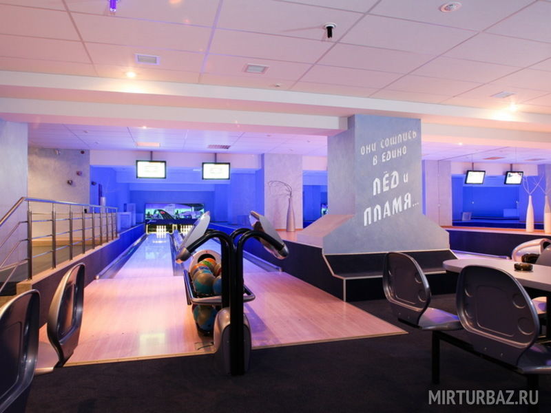 Играть в боулинг на базе отдыха «Иволга» вы можете в современном развлекательном центре «Лёд и Пламя». К услугам гостей здесь есть боулинг на 4 дорожки.
