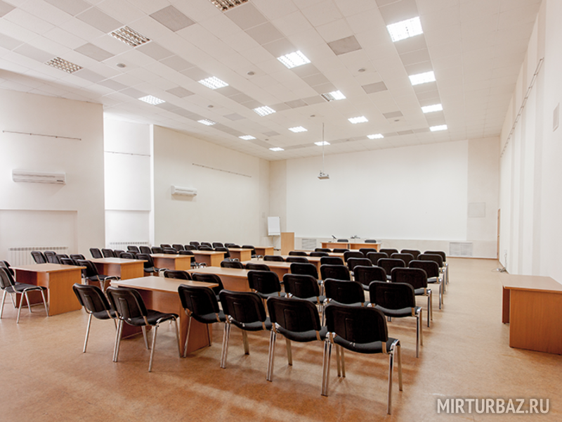 Площадь большого конференц-зала составляет 281 кв. м. Его максимальная вместительность — 300 человек. Мы предоставим вам необходимое количество столов и стулья, канцелярские принадлежности и всё, что может потребоваться для организации конференции.