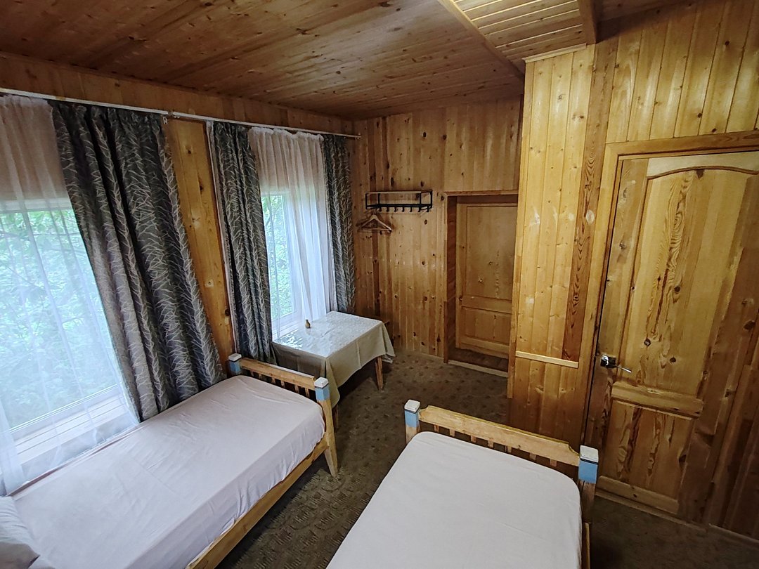 Гости базы проживают в жилых корпусах. Здесь есть комфортные номера разной вместительности. Кроме этого на территории комплекса есть отдельно стоящие домики из натурального дерева.