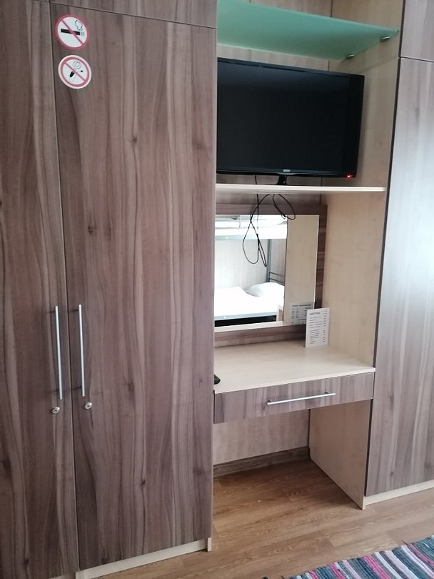 Wi-Fi, светильник, душевая кабина, вешалки, багажная тумба, зеркало, вид во двор, стул, тумба, туалет, сплит-система, телевизор с плоским экраном, двухъярусная кровать, можно с питомцамиВ номере