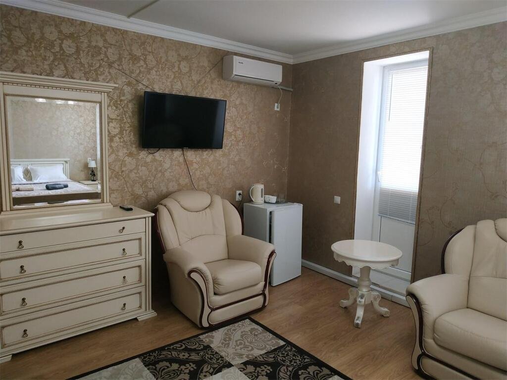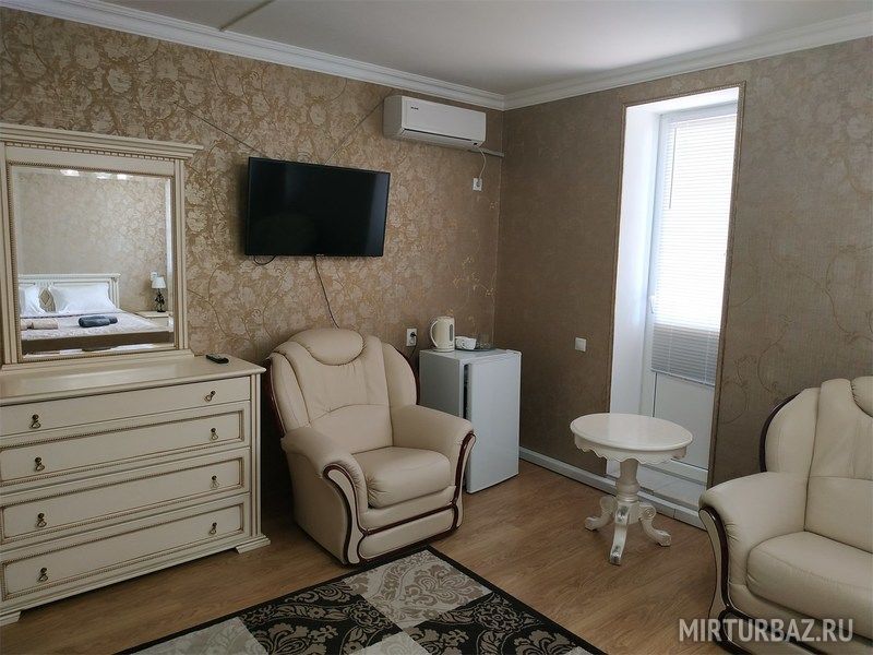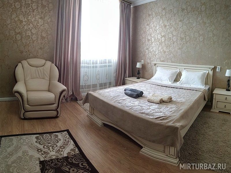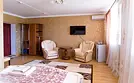 Номера высшей категории, лучшее соотношение цены и качества. В номере: современный ремонт, двуспальная кровать, фен, чайник, шкаф для одежды, телевизор с плоским экраном, мини-холодильник.