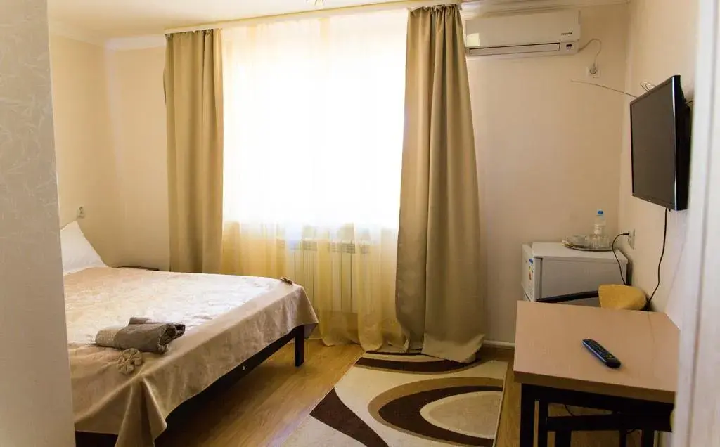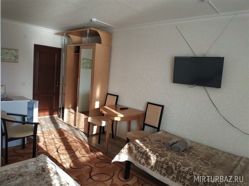 Двухместный улучшенный номер первой категории, в котором имеются все условия для комфортного отдыха - двуспальная кровать, фен, чайник, шкаф для одежды, телевизор с плоским экраном, мини-холодильник.