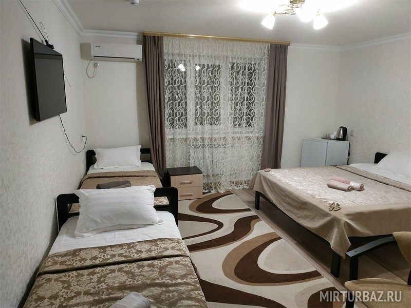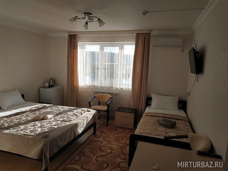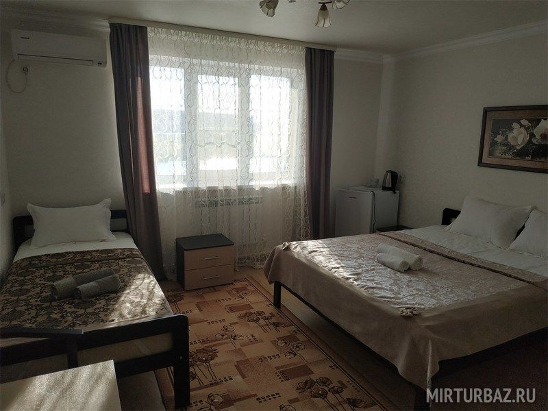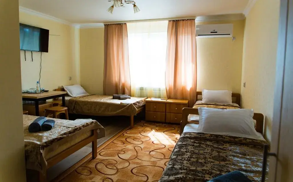 Четырехместный номер первой категории — отличный вариант для отдыха целой семьи или компании друзей. Имеются все удобства, шикарный вид из окна.