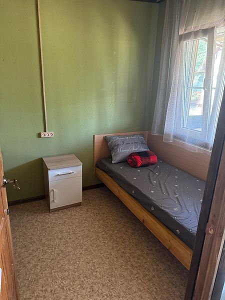В номере: 4 кровати и гардеробная. Удобства на территории.
