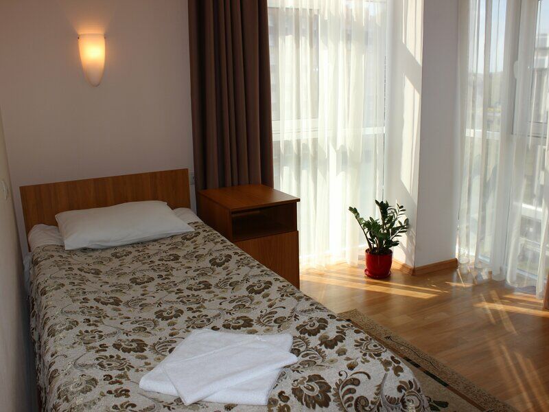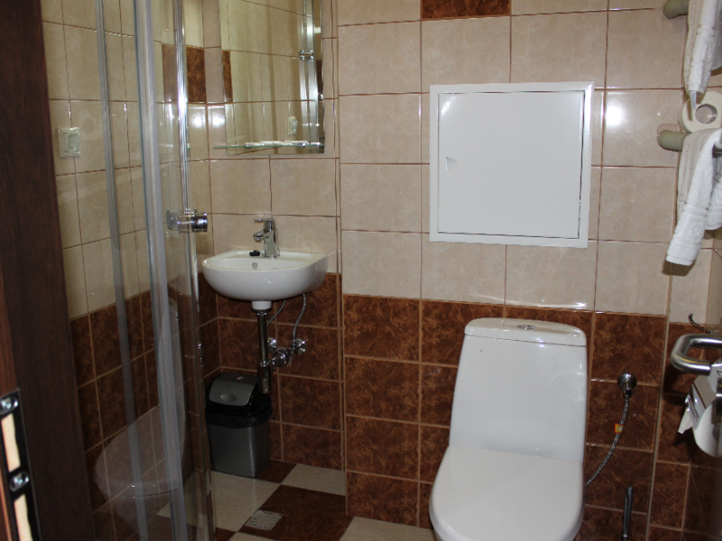 Отель расположен весьма далеко от центра. Так что ожидать прекрасного вида не стоит: либо многоэтажки, либо гаражи. До центра ехать на любом из двух автобусов или маршрутке.