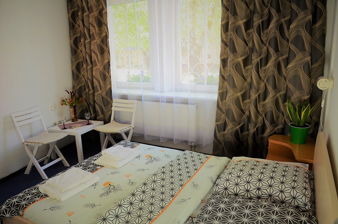 Двухместный номер. Комната оборудована 1 двуспальной кроватью. В апартаментах имеется TV. Собственные душ и туалет. Рядом оборудованная большая общая кухняВ номере