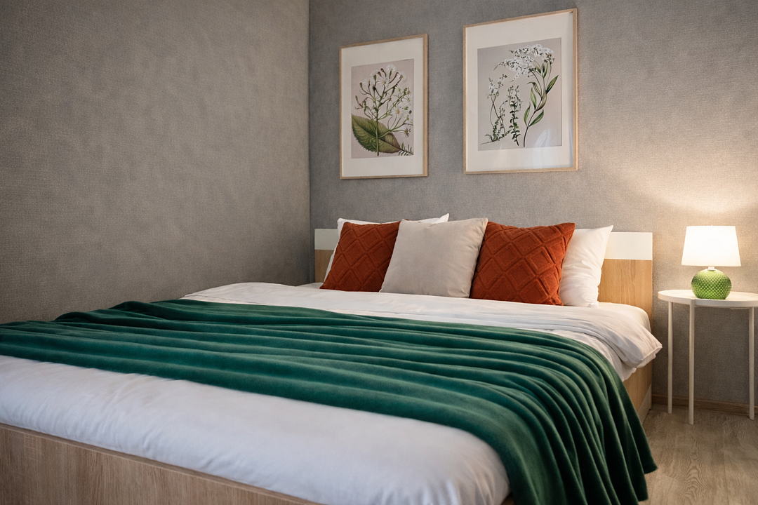 - Большая 2-спальная кровать, двухместный раскладной диван;