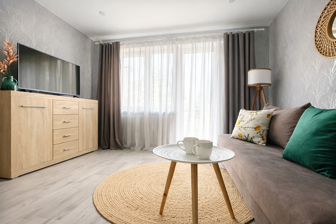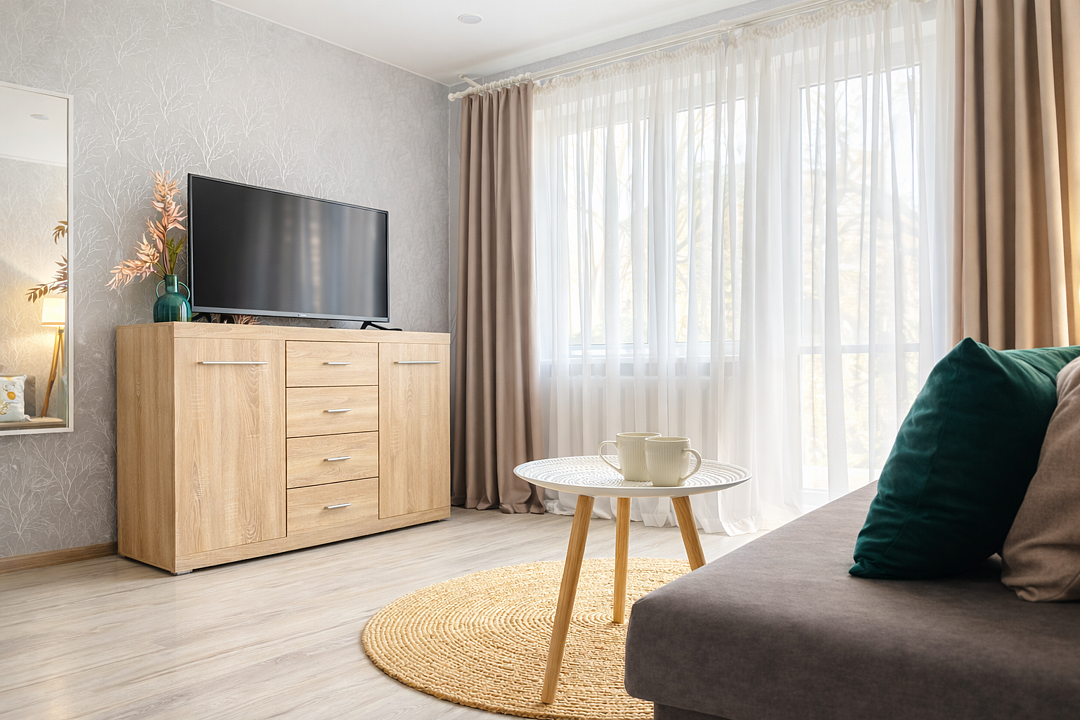 Квартира полностью укомплектована всей необходимой мебелью и техникой.
