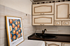 В кухонной зоне есть холодильник, микроволновая печь, электрочайник и плита.