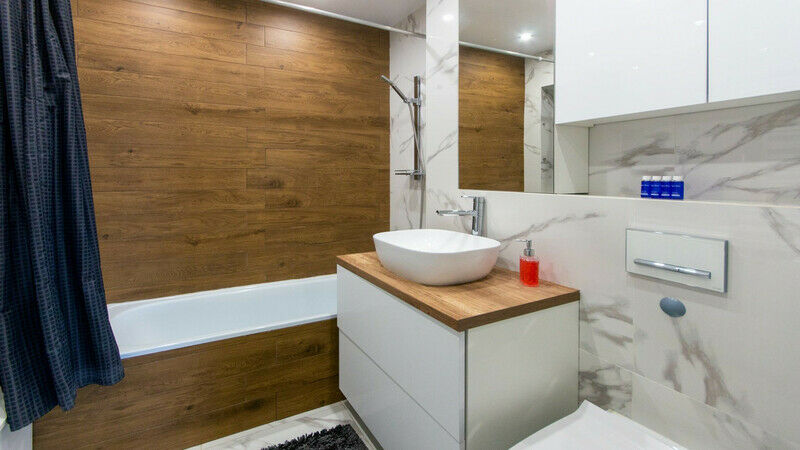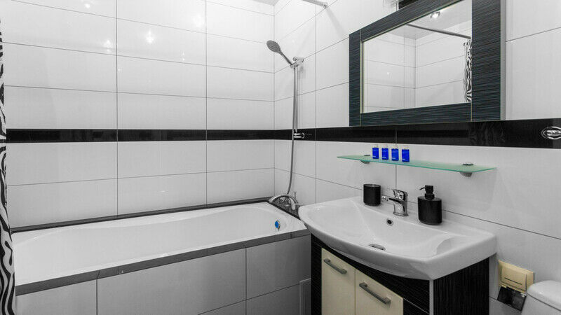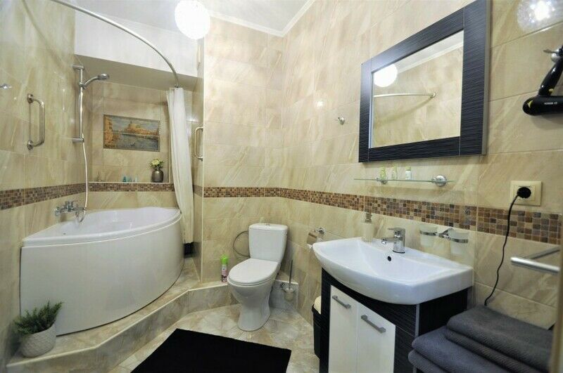 Санузел с ванной, ТВ, кухня, 3-е спальное место это раскладушка