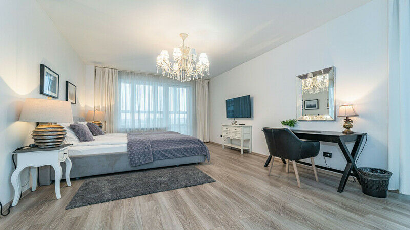 В апартаментах постелен паркетный пол. В распоряжении гостей полностью укомплектованная кухня с микроволновой печью, обеденная зона, телевизор с плоским экраном и спутниковыми каналами и собственная ванная комната с душем и тапочками. В некоторых апартаментах есть балкон и/или терраса с видом на море или город.