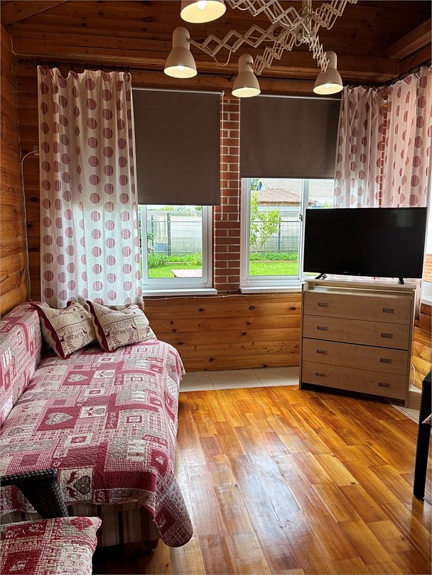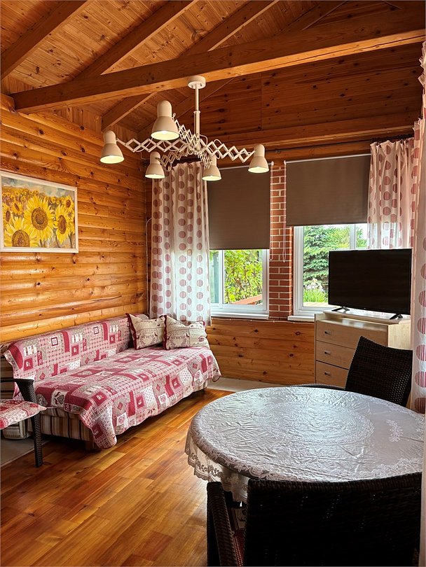 Дом WoodRay предлагает своим гостям отдохнуть от городской суеты и зарядиться энергией для успешной и плодотворной работы. В доме всегда чисто, уютно и тепло. К услугам гостей: гостиная с камином, удобный раскладывающийся диван, мини-бассейн, русская парилка, душ, ванная комната. На втором этаже большой обеденный стол, телевизор с плоским экраном, Wi-Fi, барная стойка, мини-холодильник, микроволновая печь, чайник. В спальне удобная двуспальная кровать. На территории в летний период Вас ждет 10 -ти метровый бассейн под открытым небом. На летней кухне Вы сможете приготовить мясо, рыбу на открытом огне. Гостевой дом WoodRay ждет Вас!Услуги и удобства