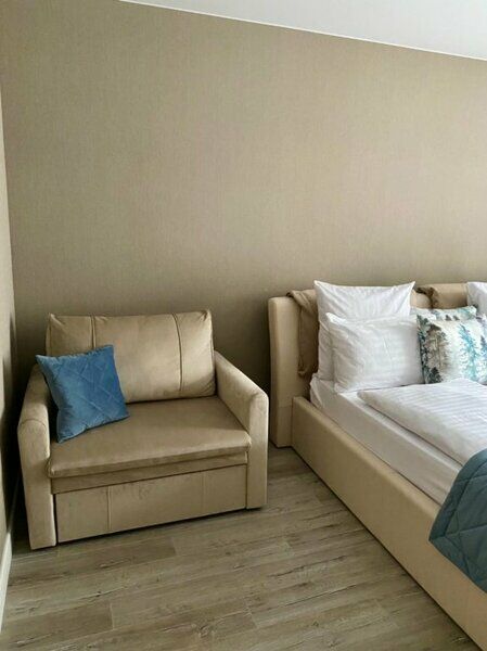 Апартаменты расположены в новом микрорайоне с развитой инфраструктурой: продуктовые магазины, аптека, автобусная остановка.