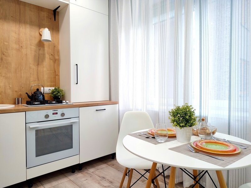 На территории собственной кухни можно приготовить огромное множество блюд, ведь она обустроена кухонным гарнитуром, электрическим чайником, микроволновой печью и холодильником. В пешей доступности размещены кафе, рестораны быстрого питания, столовые, а также бары и пабы.