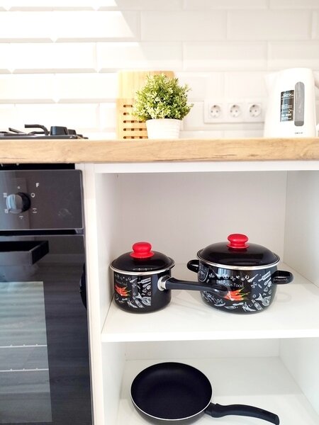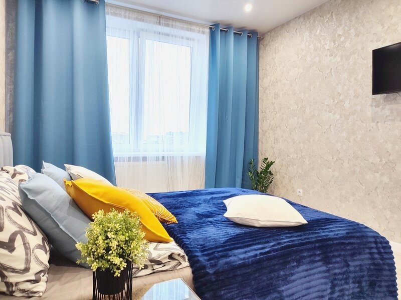 В апартаментах для комфортного проживания современная мебель и техника: одна большая двуспальная кровать, двухспальный диван (160*200см), бытовая техника (стиральная машина,микроволновая печь), скоростной WI-FI, ТВ, гладильная доска, утюг, сушка. Отдельная оборудованная кухня: плита, духовой шкаф, электрический чайник, микроволновая печь, полный комплект посуды для приготовления и приёма еды. На проживание предоставляется комплект свежего постельного белья и полотенца для лица и тела.