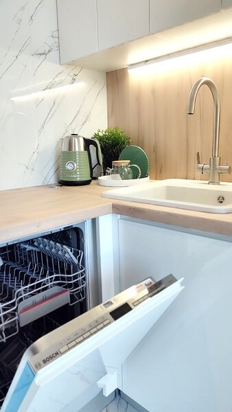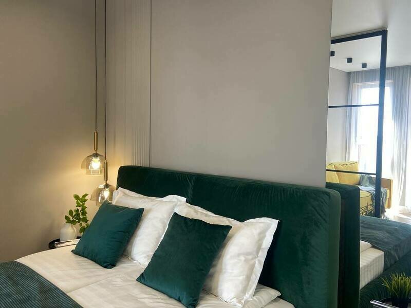 В апартаментах для комфортного проживания: современная мебель и техника, одна большая двуспальная кровать, двухспальный диван (160*200см), вся необходимая бытовая техника: стиральная машина, микроволновая печь, посудомоечная машина, скоростной WI-FI, 2 ТВ, гладильная доска, утюг, сушка. Отдельная оборудованная кухня: полный комплект посуды для приготовления и приёма еды, установлена система фильтрации воды на кухне, газовая плита, стаканы и бокалы.