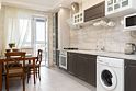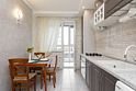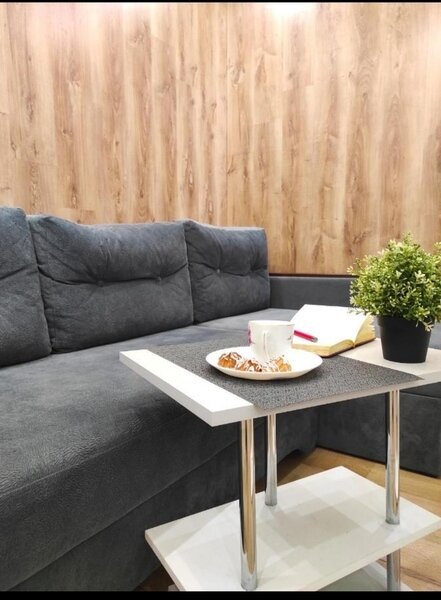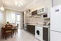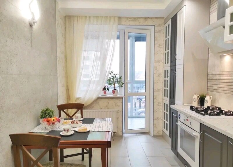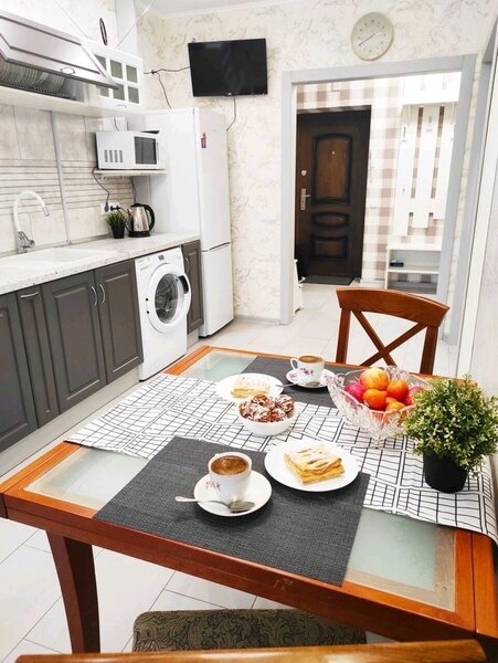 Апартаменты с новым ремонтом, где для отдыха предусмотрено 2 спальная кровать и комфортный диван, кухня полностью оборудована к приему и приготовлению пищи, имеется плита и холодильник, микроволновая печь и духовка, в ванной комнате - душевая кабина. Имеются гладильная доска и утюг.