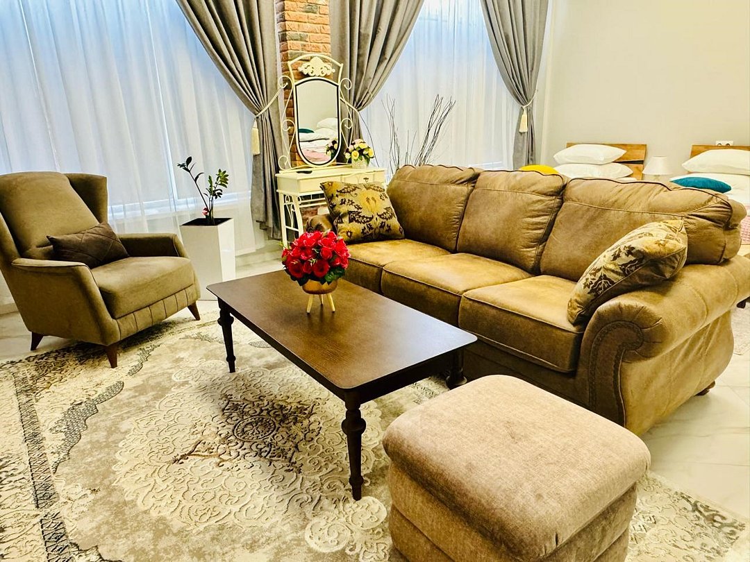 Остановитесь в наших стильных семейных апартаментах площадью 45 м² — это идеальное пространство для комфортного проживания до 5 человек. Здесь вас ждут две односпальные кровати (90×200 см), одна двуспальная кровать (160×200 см) и мягкий диван в уютной гостиной зоне. Полностью оборудованная мини-кухня с холодильником, микроволновкой, кофемашиной и кухонной утварью позволит чувствовать себя как дома. Ванная комната оснащена душем, биде и туалетно-косметическими принадлежностями. На первом этаже — удобно для гостей с ограниченными возможностями. Вы также найдёте: • кондиционер и тёплые полы • телевизор с плоским экраном и спутниковыми каналами • звукоизоляцию и Wi‑Fi • уютный интерьер Здесь всё продумано для вашего спокойствия и настоящего отдыха.Услуги и удобства
