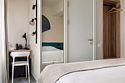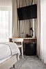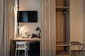 Wi-Fi, кондиционер, светильник, настольные лампы, фен, электронные замки, ванная комната, душевая кабина, санузел, банные полотенца, тапочки, косметические средства, кровать «Queen size», письменный стол, зеркало, письменные принадлежности, сейф, чайник, унитаз, раковина, ковровое покрытие, душ, кресло, стаканы, стул, туалетные средства, внутренний телефон, мини-холодильник, телевизор со Smart TV, номер для некурящих, уборка номера, вешалки-плечики, бутилированная вода, мыло, затемняющая штора, зеркало в полный рост, открытый шкафВ гостиничном номере