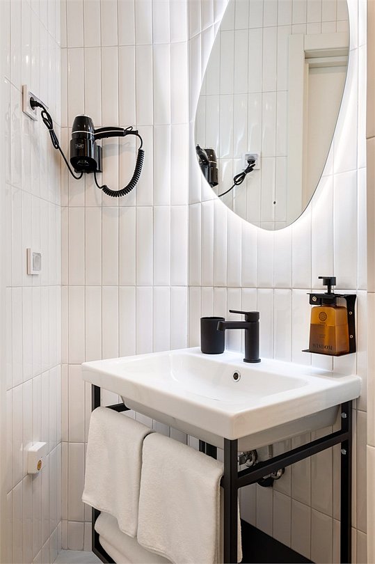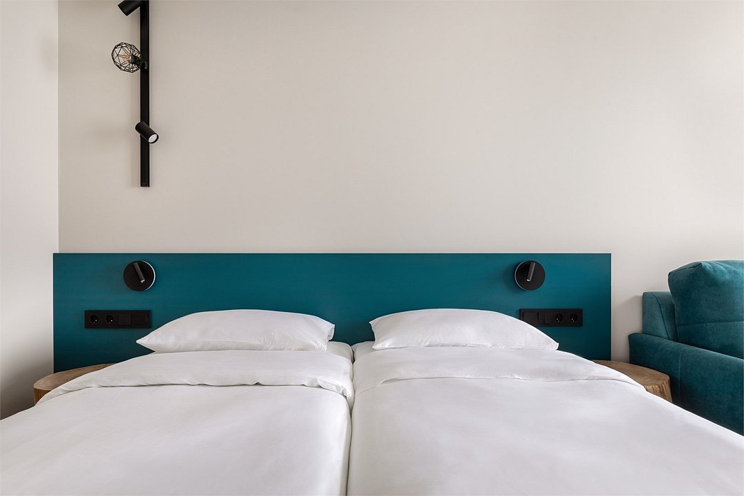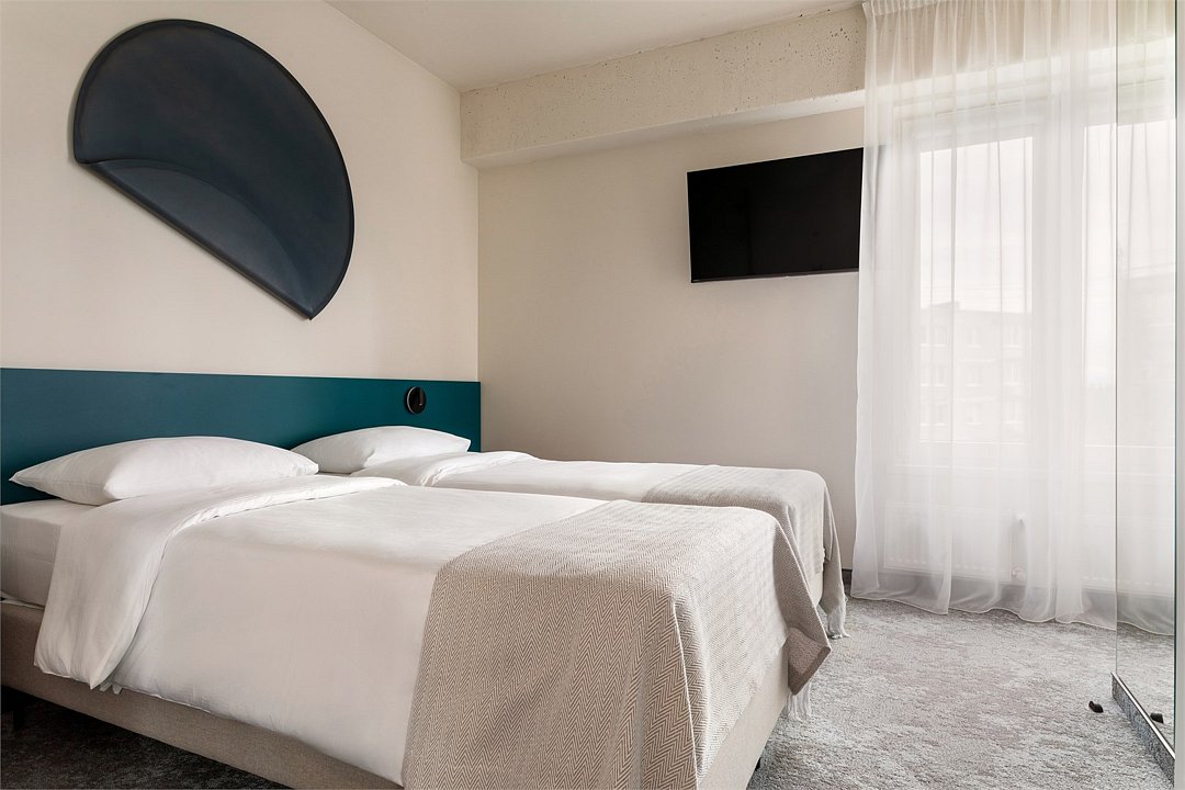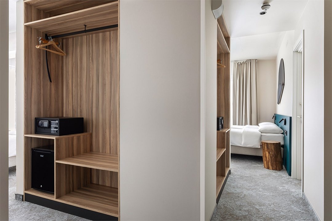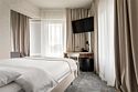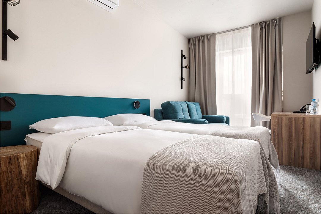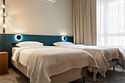 Wi-Fi, кондиционер, светильник, настольные лампы, фен, электронные замки, ванная комната, душевая кабина, санузел, банные полотенца, тапочки, гигиенические средства, косметические средства, две односпальные или большая двуспальная кровать, кресла, письменный стол, зеркало, звуконепроницаемые стены и окна, письменные принадлежности, сейф, чайник, унитаз, раковина, ковровое покрытие, отопление, душ, стул, туалетные средства, туалет, раскладной диван, внутренний телефон, мини-холодильник, телевизор со Smart TV, номер для некурящих, уборка номера, вешалки-плечики, бутилированная вода, мыло, зеркало в полный рост, открытый шкаф, без питомцевВ гостиничном номере