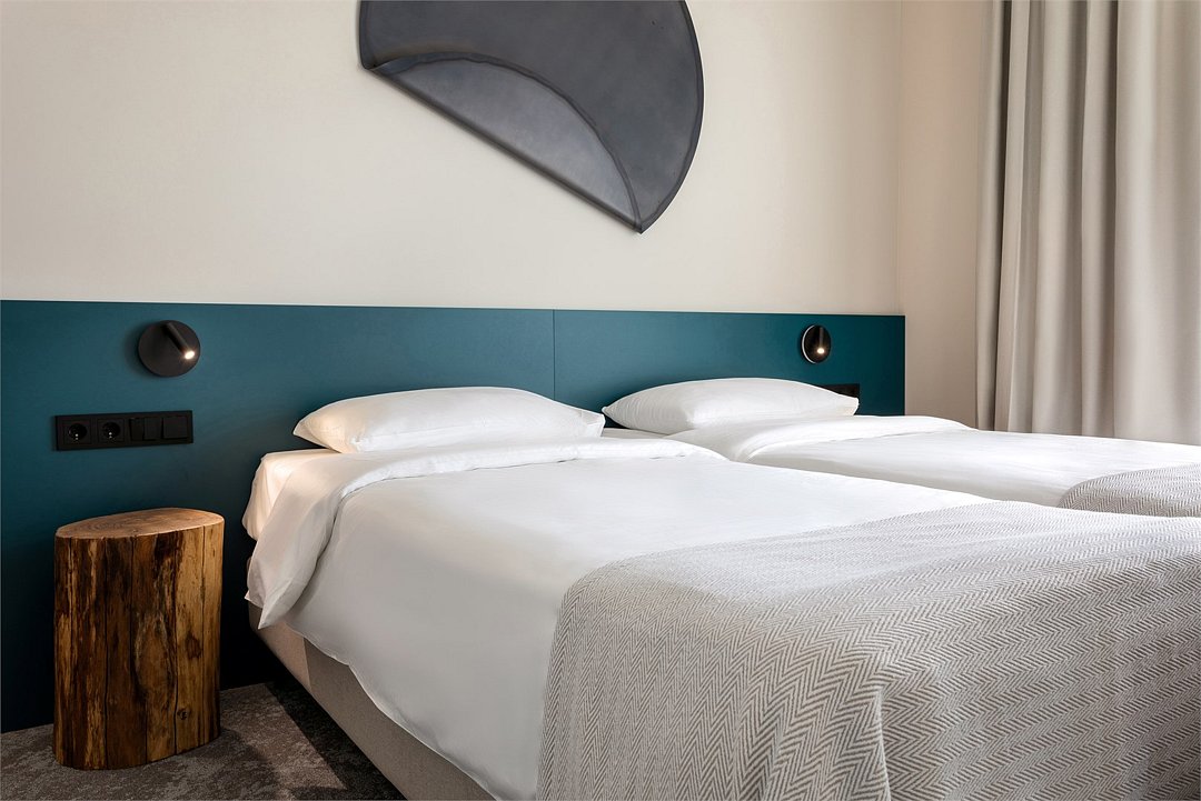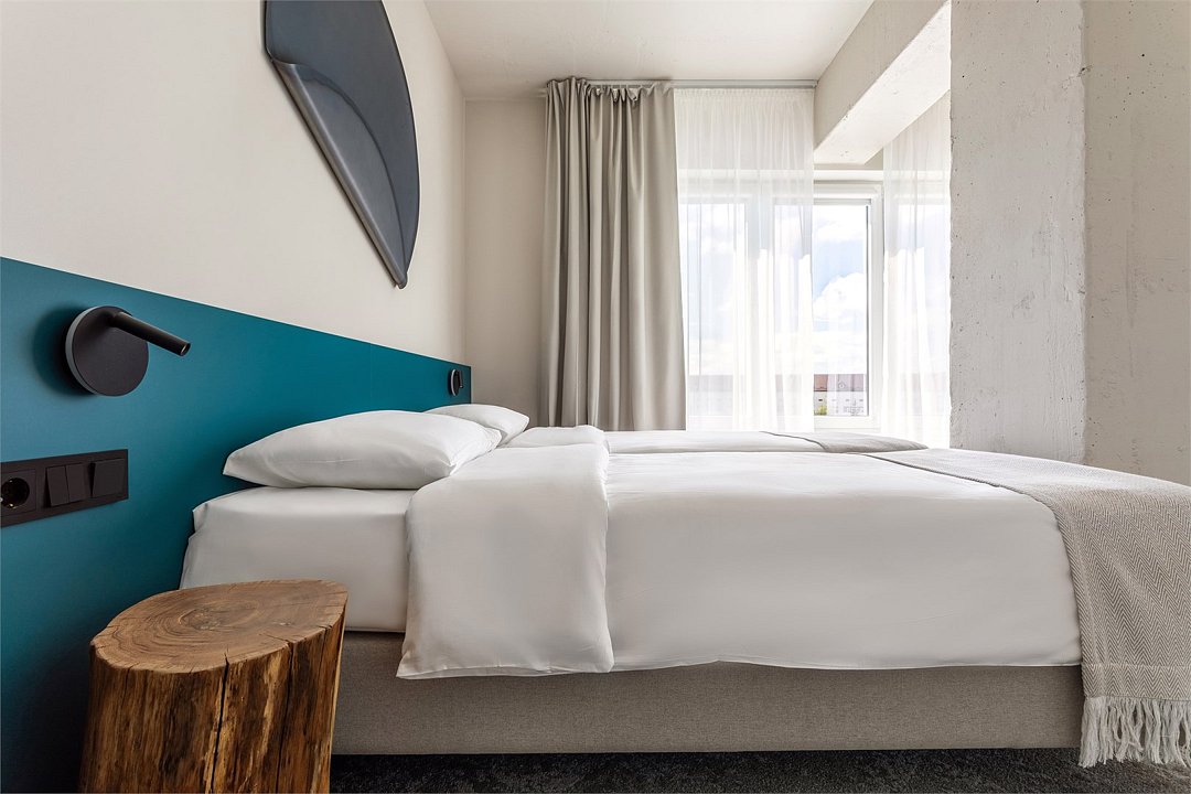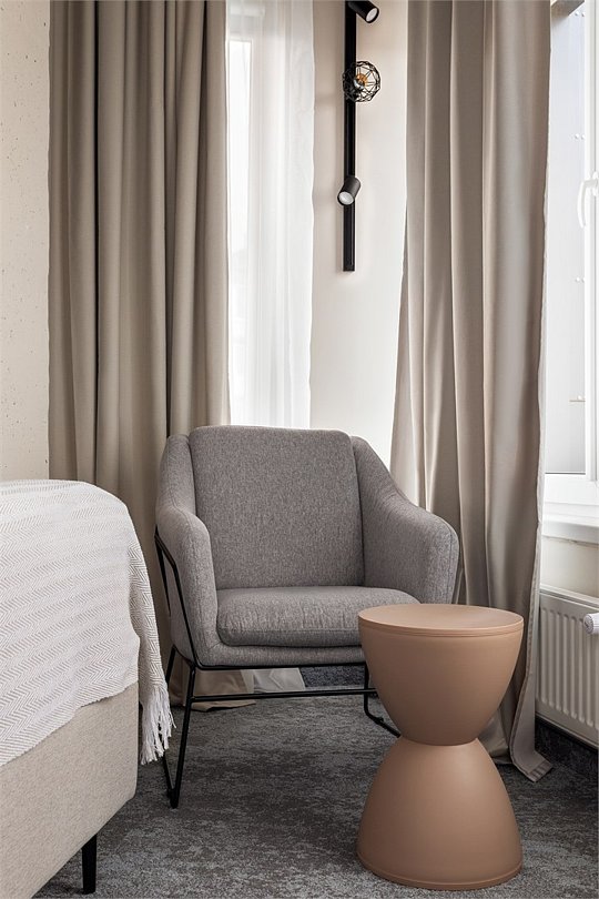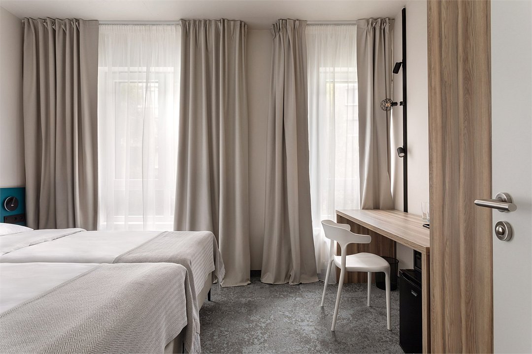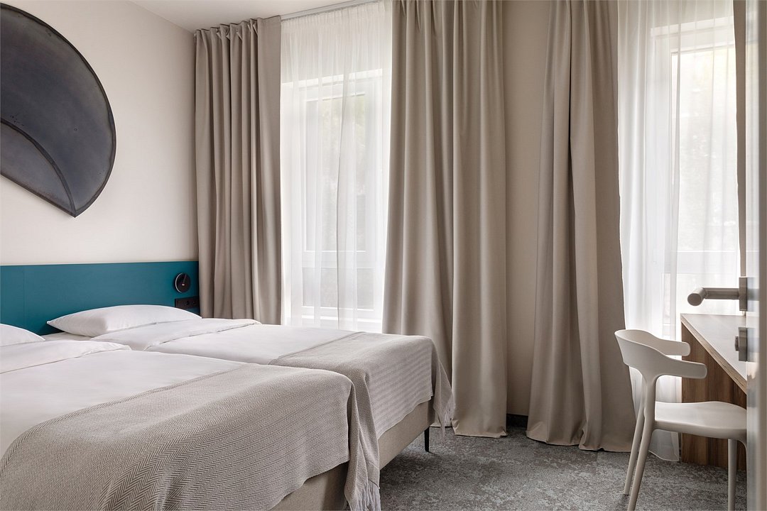 Двухместный номер Стандарт сочетает в себе современные дизайнерские решения, уют и комфорт. Интерьер выполнен в теплых светлых тонах и отражает в себе особенности края - дюны, море, леса. Окна номеров выходят в зеленый внутренний двор, что обеспечивает тишину и покой. В номере: • Двуспальная кровать Queen-Size 160x200 см с ортопедическим матрасом высокого качества или 2 односпальные кровати; • Сейф для хранения ценных вещей; • Мини-холодильник; • Кондиционер для создания идеального микроклимата; • Телевизор с функцией смарт ТВ; • Стильная ванная комната с душевой кабиной; • Фен и набор косметических принадлежностей Natura Siberica (шампунь, гель для душа, мыло, также по запросу предоставляются зубной, бритвенный, косметический наборы); • Шторы blackout; • Чайная станция.Услуги и удобства