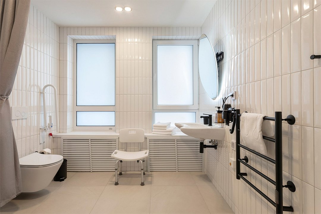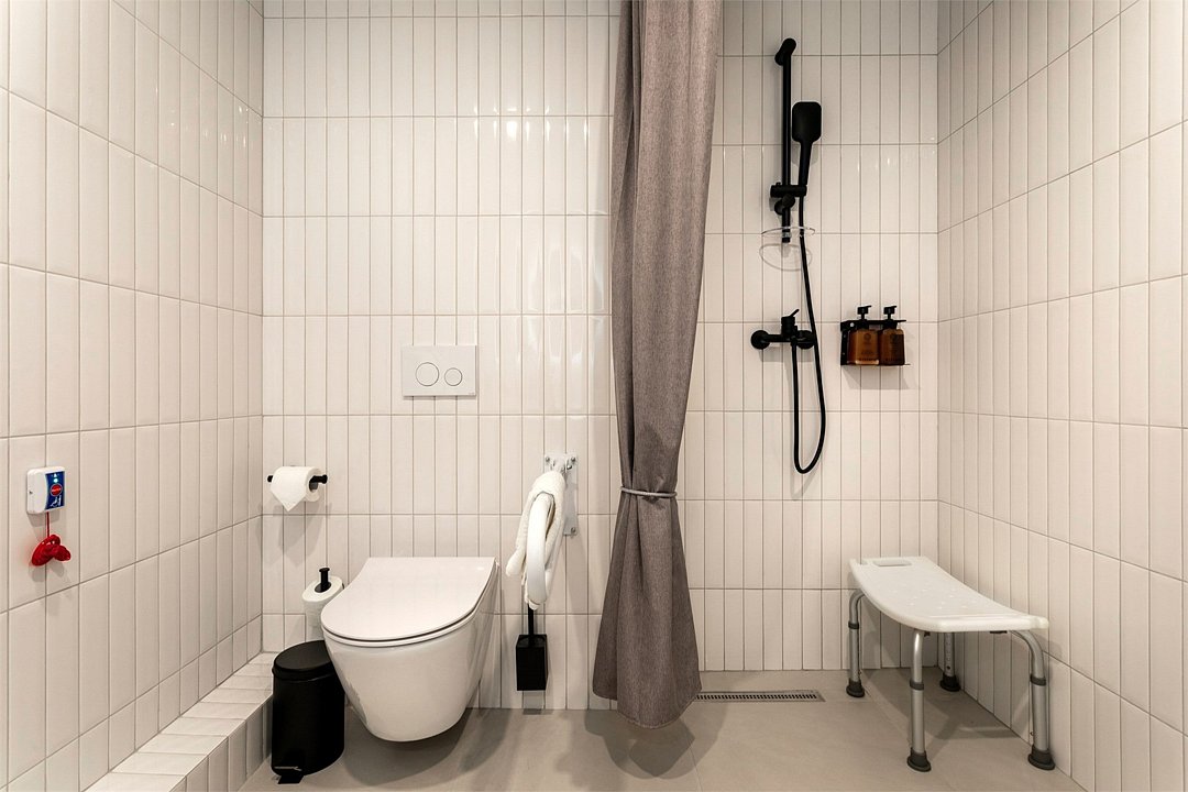 Стандарт для маломобильных гостей – это уютный номер, созданный с учетом потребностей людей с ограниченными возможностями. Интерьер выполнен в теплых светлых тонах и отражает в себе особенности края - дюны, море, леса. Окна номера выходят в зеленый внутренний двор, что обеспечивает тишину и покой. Номер оснащен специально оборудованной ванной комнатой и санузлом, а также более широкими дверными проемами для удобства передвижения. Мы позаботились о том, чтобы ваш отдых был максимально комфортным и безопасным. В номере: • Двуспальная кровать King-Size 180x200 см с ортопедическим матрасом высокого качества или 2 односпальные кровати 90х200 см; • Сейф для хранения ценных вещей; • Мини-холодильник; • Кондиционер для создания идеального микроклимата; • Телевизор с функцией смарт ТВ; • Специально оборудованная ванная комната с душевой кабиной и санузлом, адаптированными для маломобильных гостей; • Фен и набор косметических принадлежностей Natura Siberica (шампунь, гель для душа, мыло, также по запросу предоставляются зубной, бритвенный, косметический наборы); • Шторы blackout; • Чайная станция.Услуги и удобства
