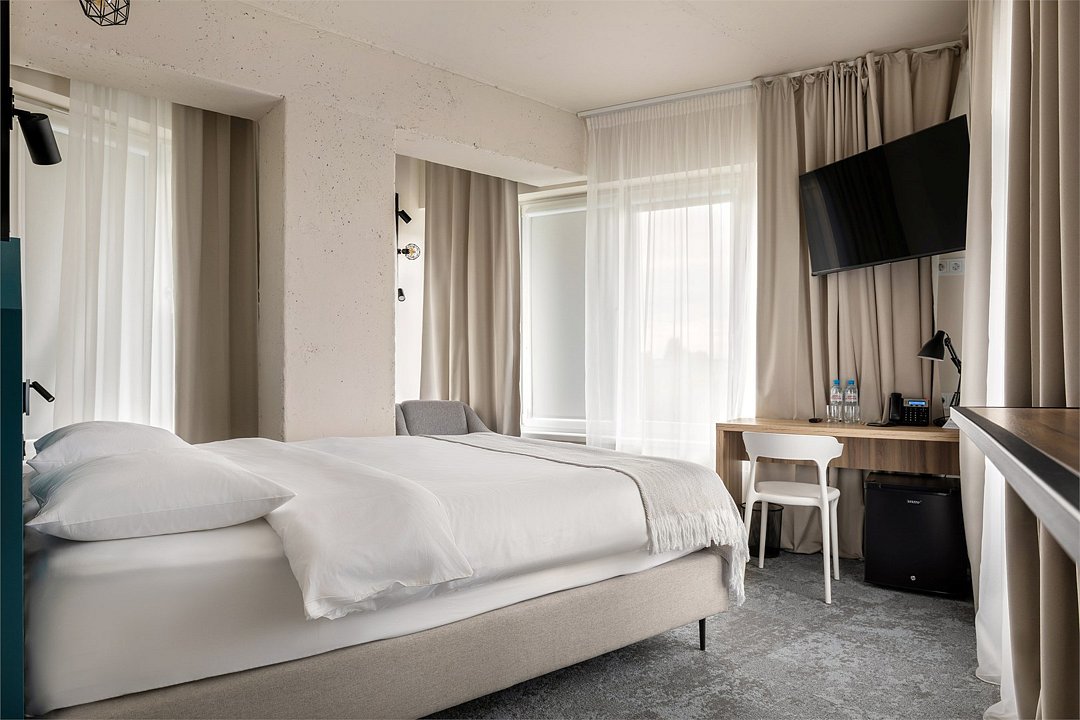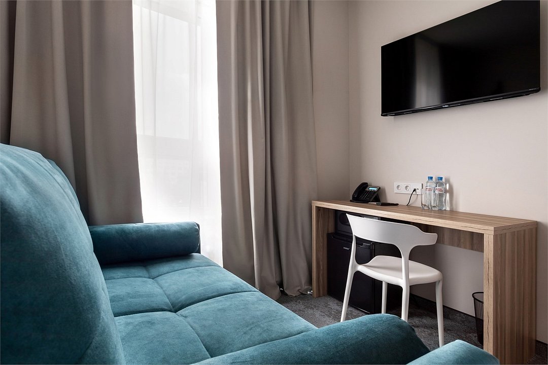 Просторный двухместный номер Улучшенный Стандарт сочетает в себе современные дизайнерские решения, уют и комфорт. Интерьер выполнен в теплых светлых тонах и отражает в себе особенности края - дюны, море, леса. Окна номеров выходят на улицу 9 Апреля, либо во внутренний двор. В номере: • Двуспальная кровать King-Size 180x200 см с ортопедическим матрасом высокого качества или 2 односпальные кровати 90х200 см; • Сейф для хранения ценных вещей; • Мини-холодильник; • Кондиционер для создания идеального микроклимата; • Телевизор с функцией смарт ТВ; • Стильная ванная комната с душевой кабиной; • Фен и набор косметических принадлежностей Natura Siberica (шампунь, гель для душа, мыло, также по запросу предоставляются зубной, бритвенный, косметический наборы); • Шторы blackout; • Чайная станция.Услуги и удобства